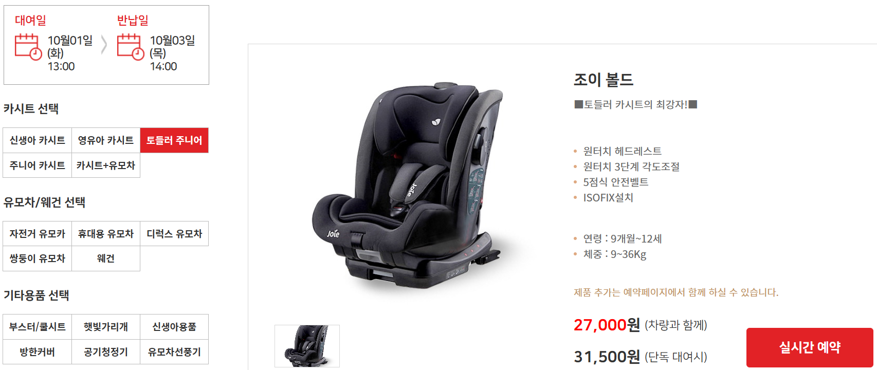 우리에게 익숙한 카시트 브랜드 '조이'를 대여하자